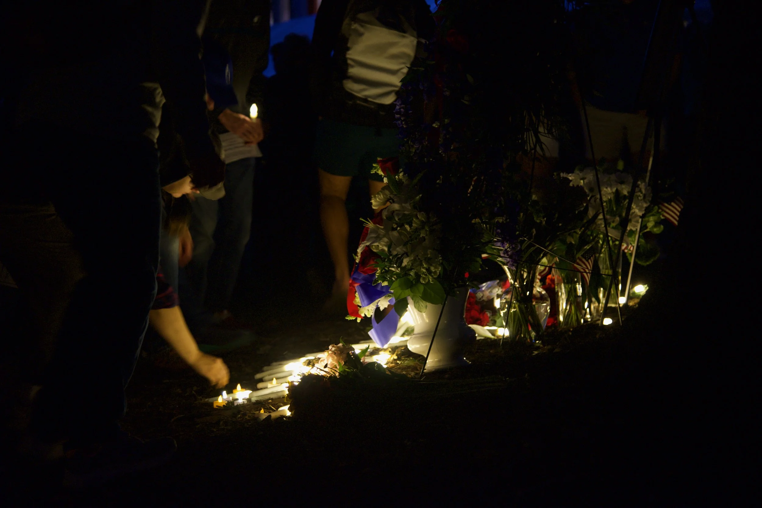 To conclude the event, Biber conducted the closing benediction, leading the audience members to lay candles at the memorial constructed by The Spectator, with assistance from several community members and organizations.